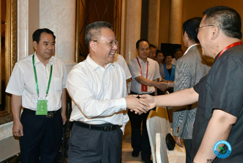 ( 图为:海南省人民政府副省长李国梁在开幕式上致辞 ) 6月28日,省长沈晓明携省委常委胡光辉、张琦、严朝君,副省长李国梁、王路、何西庆以及省政府秘书长陆志远,在海口会见了2017世界海商大会、2017首届海南国际高新技术产业及创新创业博览会的37名重要嘉宾,与大家共叙友情、共商海南发展大计;6月29日,省委书记刘赐贵、省长沈晓明、省政协主席于迅到海商精品馆巡馆,询问展出情况,并现场与群众交流。